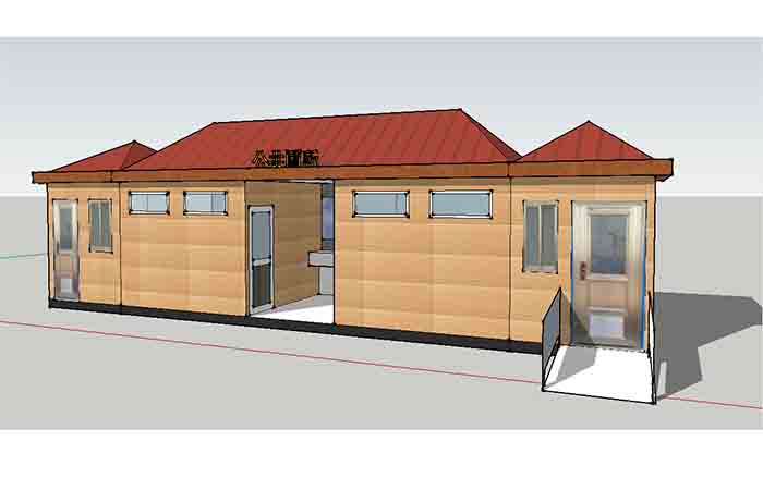 拼裝廁所;在廠里做好各個廁所部件,再到現(xiàn)場組裝在一齊,適合不易運輸?shù)拇笮蛶_@座箱式廁所,女廁5個蹲位內(nèi)配工具間,男廁2個蹲位+2小便斗,第三衛(wèi)生間由殘疾馬桶、助力洗手盆和兒童馬桶、兒童洗手盆外加嬰兒臺等設(shè)施。廁所前后有窗,通風(fēng)采光,前部走廊裝有屋檐,防雨防曬。此廁所位于公路綠道邊,整體大氣,功能齊全,造型美觀,是一道難得的靚麗景觀!